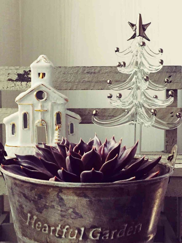 同じ様な色みの鉢に入れてしまって少し地味なので、クリスマス雑貨と一緒に🎄🎄
