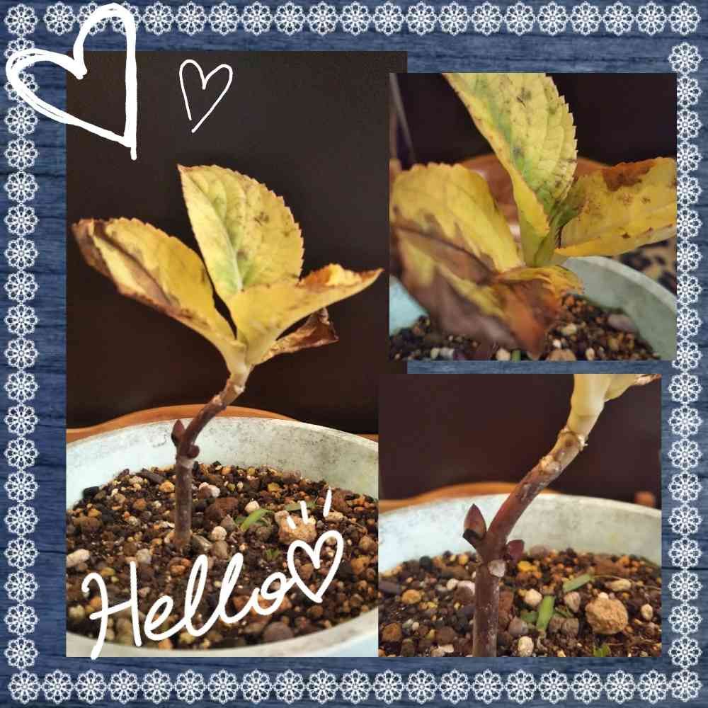 今日も紫陽花。こちらは少し大きいですが、曲がってきた〰️💦生きてる?芽が出てるよね?私にとっては可愛いおチビさん❤️