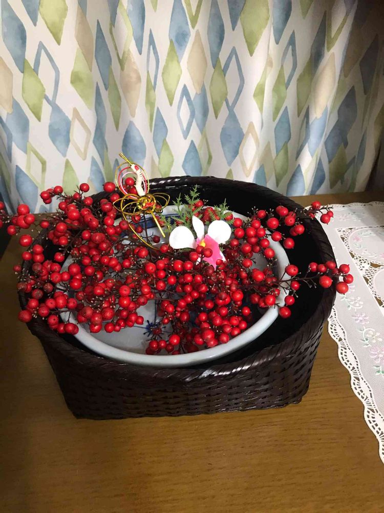 今日のテレビ番組、花と暮らす🌸で紹介されていた(新春を彩る)の生花、真似してみました