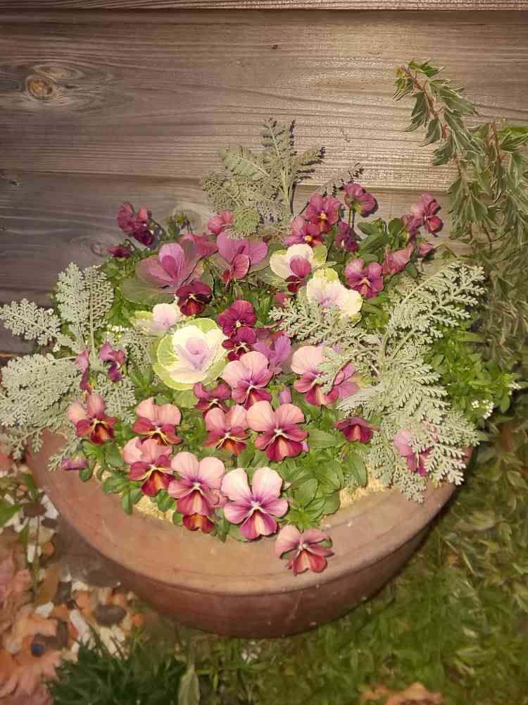 今夜のPicはお気に入りのカフェの外に飾られていたビオラと葉牡丹、シルバーリーフなどの寄せ植え。全体が丸く収まってる寄せ植えも可愛いい感じでいいですね~😆👍💕
