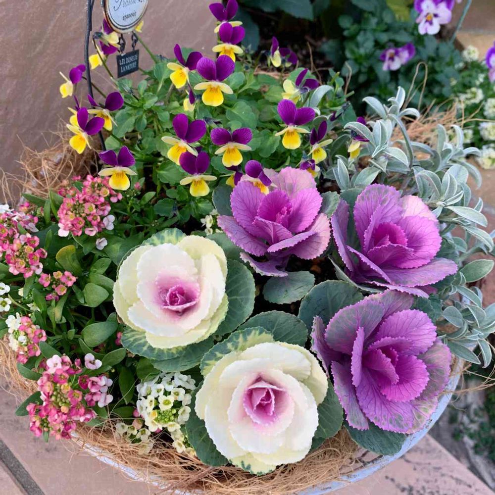葉牡丹とアリッサムやビオラの合わせが良いですね〜(*^▽^*)🎶💓