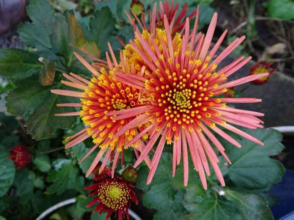 真ん中が筒咲きになっている変わったタイプのキクを見つけました‼️