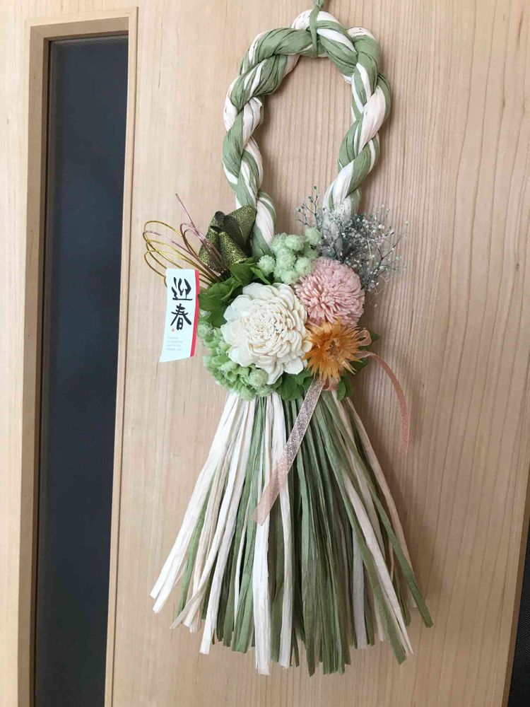 ワークショップで、ブリザードフラワーを使ったしめ縄作りました😊