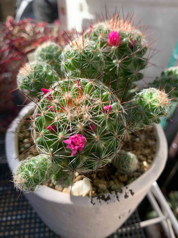 今頃咲き始めた赤花銀手毬🌵さんです😄