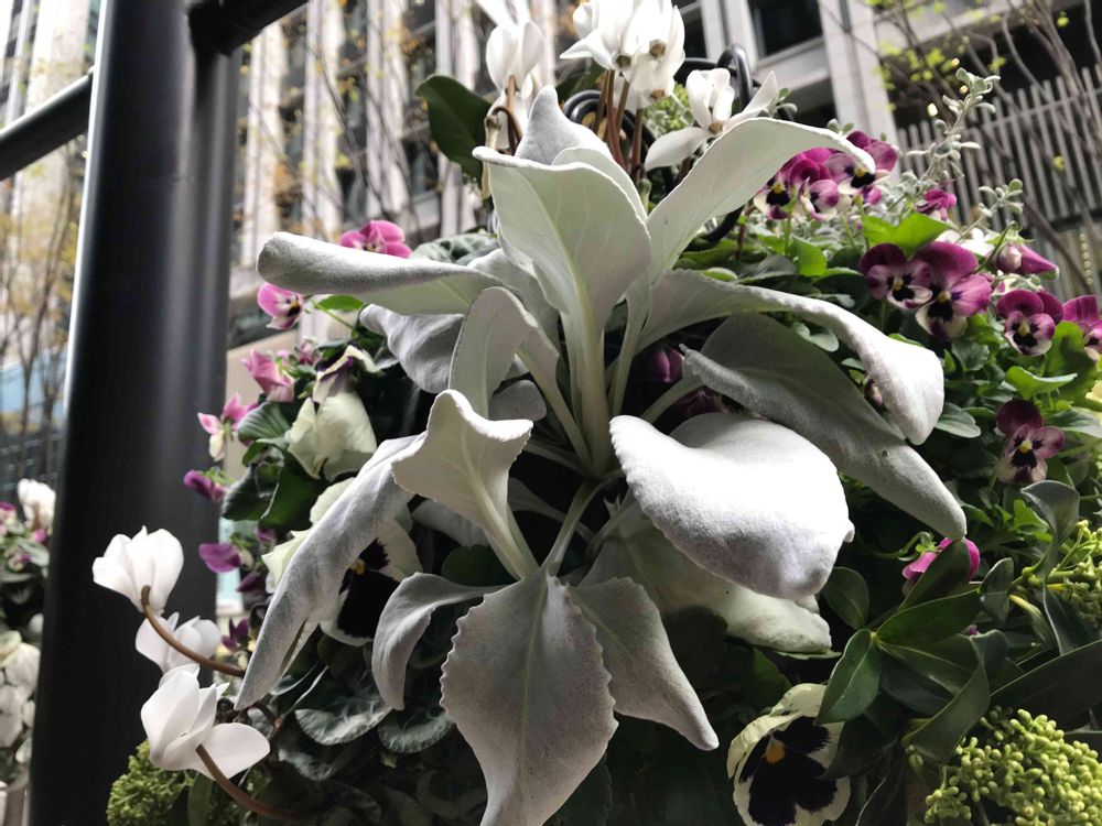 寄せ植えに入っている大きめのシルバーリーフは何でしょうか