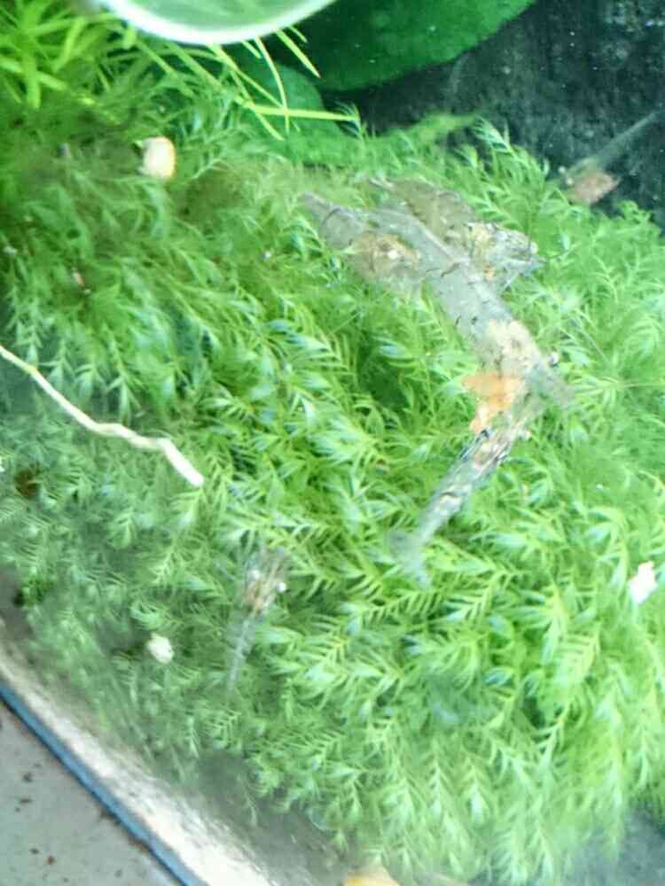 ウォーターフェザーの森の上に群がる増殖中のミナミヌマエビ大家族🎵