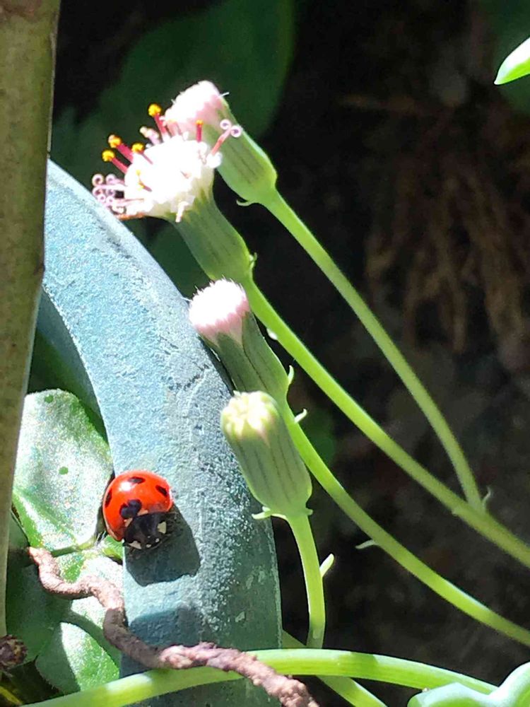 かたわらには知らないうちに咲いていたドルフィンネックレスのお花🌼