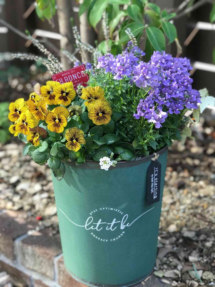 鉢と花の色の組み合わせがとっても素敵な寄せ植えですね♡