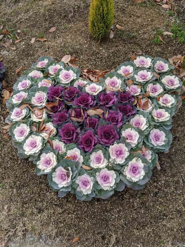 今日のウオーキングの道すがら❗年末らしく葉牡丹の綺麗なハート♥️💘