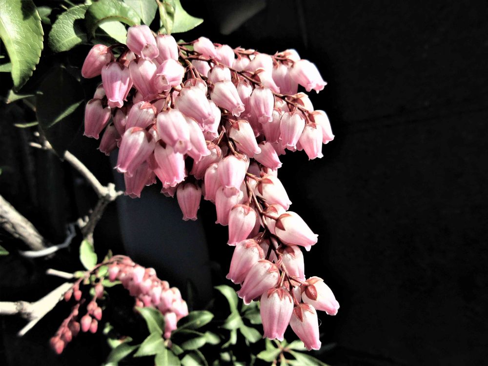 今日の花 アセビ つぼ型のかわいい花が房になって垂れ下がって咲きます。