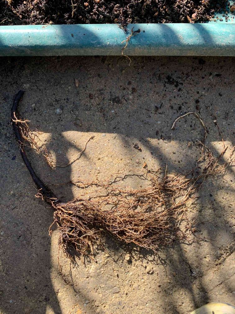 太い根があっても、先からしか白根が出ていなければ上の根が出ているところでカットします。
