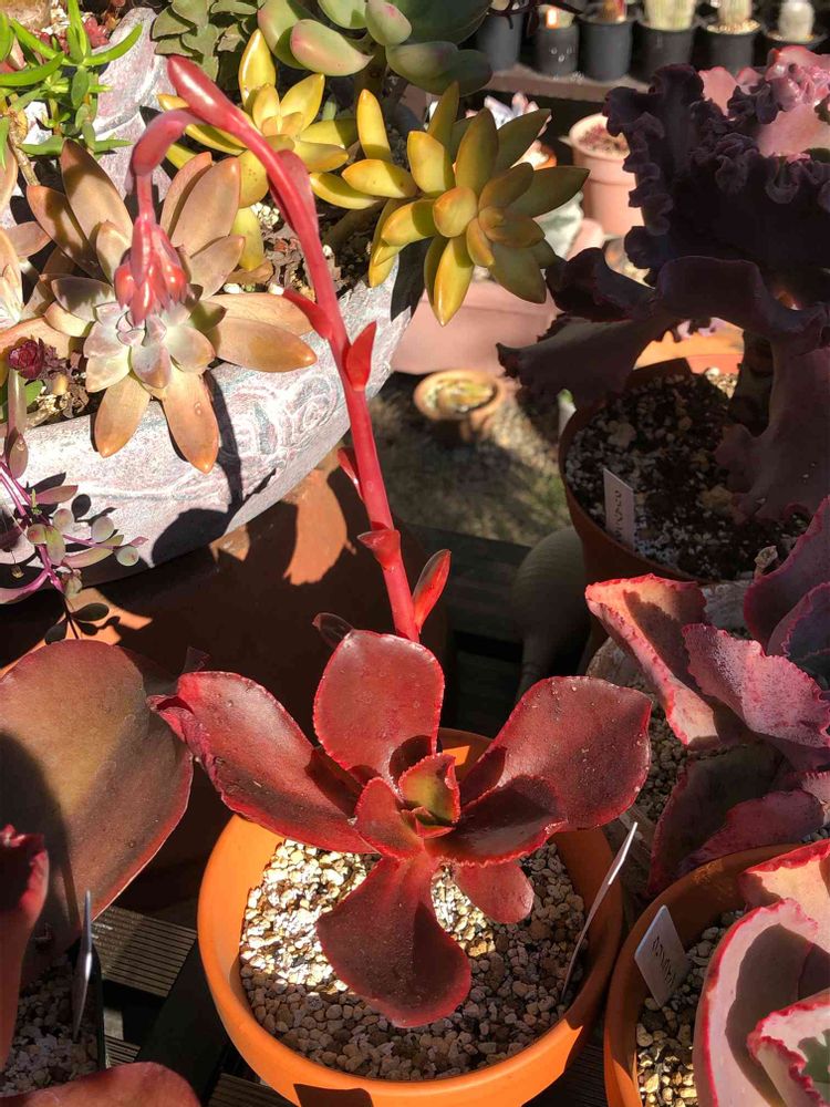 うちにあるエケベリアの中でもかなり遅い花。花芽も真っ赤なのね。