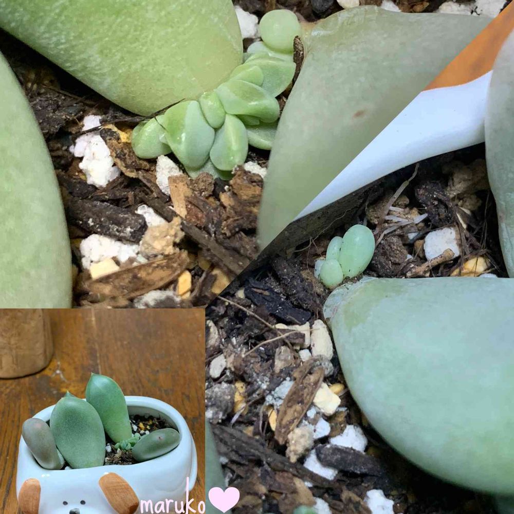 小さなワンコ鉢に大きめプクプク葉っぱが窮屈そうに感じましたがもう暫く元葉に栄養もらって大きくなってほしいです☺️🍀