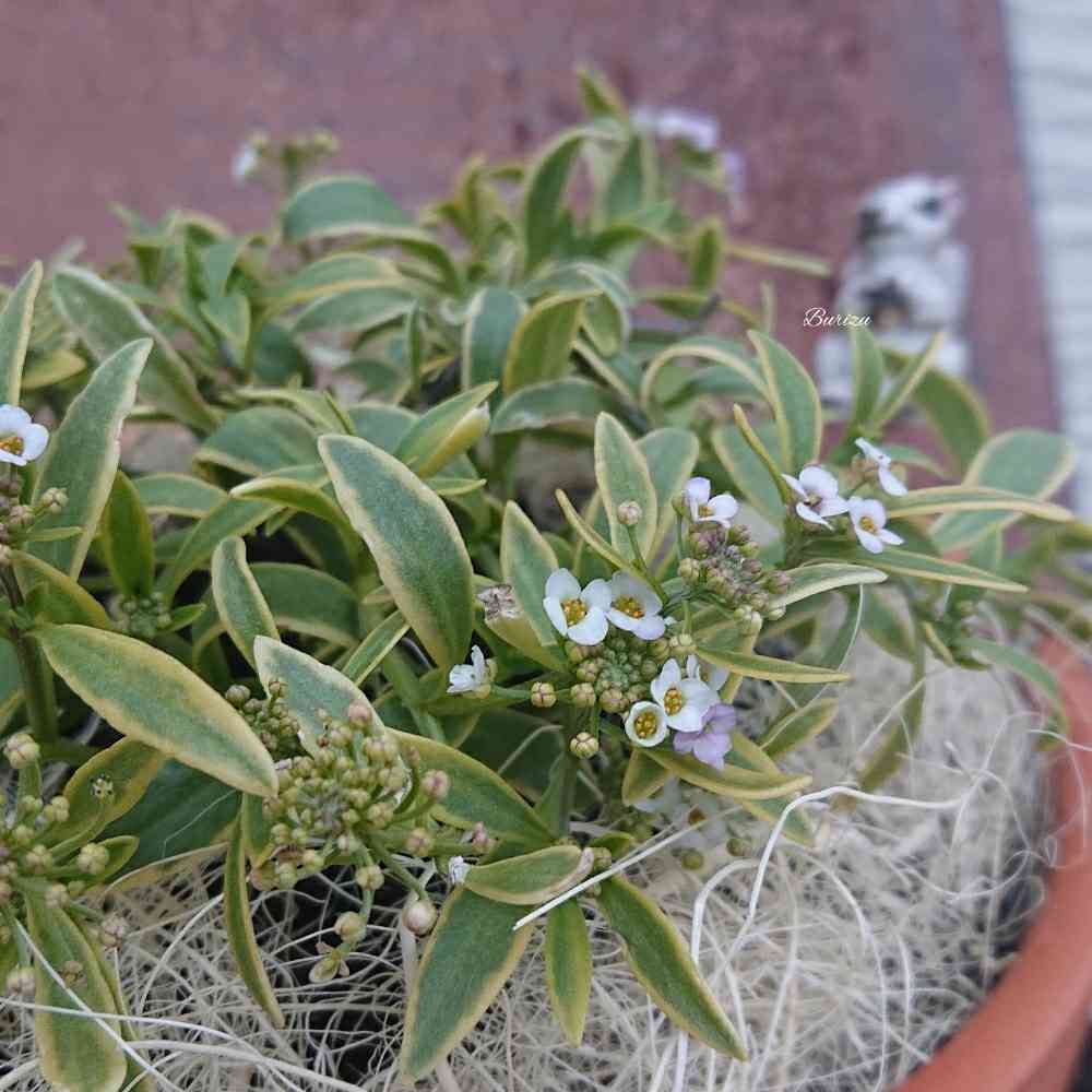 アリッサムの斑入りは初めましてなんです😊お花が咲いてもっと華やかになるのが楽しみにです〜🥰
