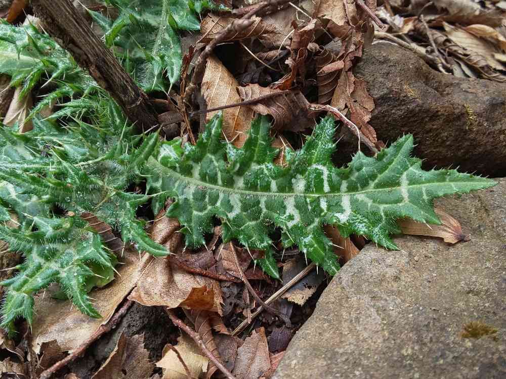 私も素人なのでよくわからないのですが、斑ではないような気がします。葉脈の出方なのか、ハモグリバエのような虫害なのか。なにか他の要因があるのかも?素人考えですけど。アメリカオニアザミ自体が要注意外来生物ですが。