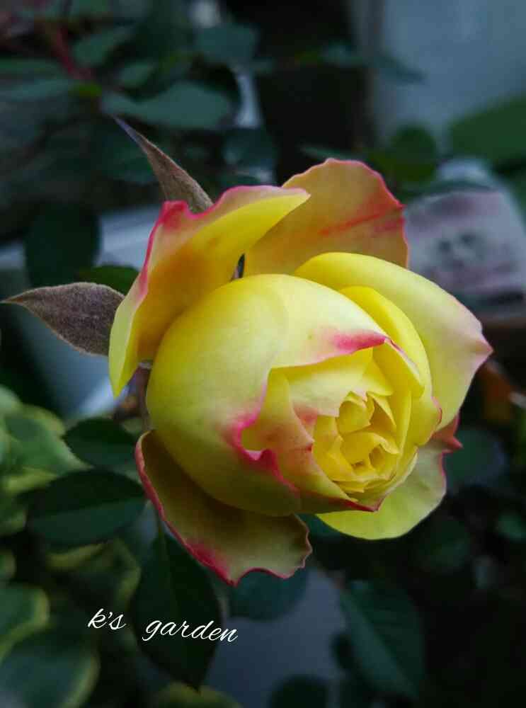 黄色にちょっと縁が赤になってて、素敵なミニバラさんだね🌹