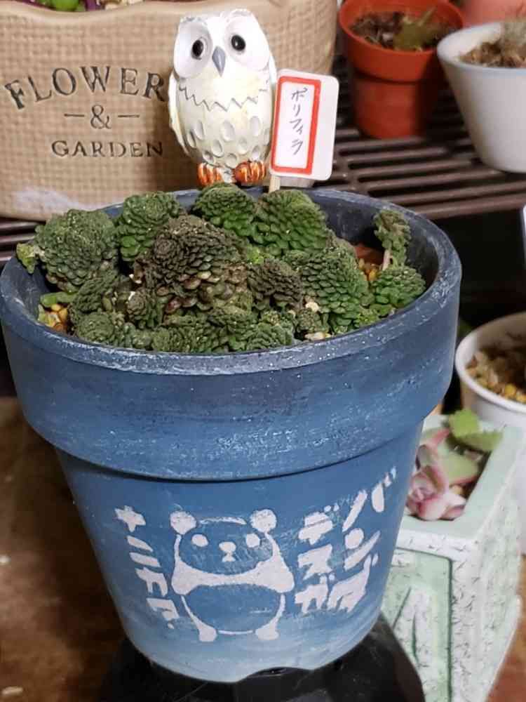 今年最後の「フクロウの日」参加です。先日お迎えしたモナンテス ポリフィラを🐼鉢にインしてみました。