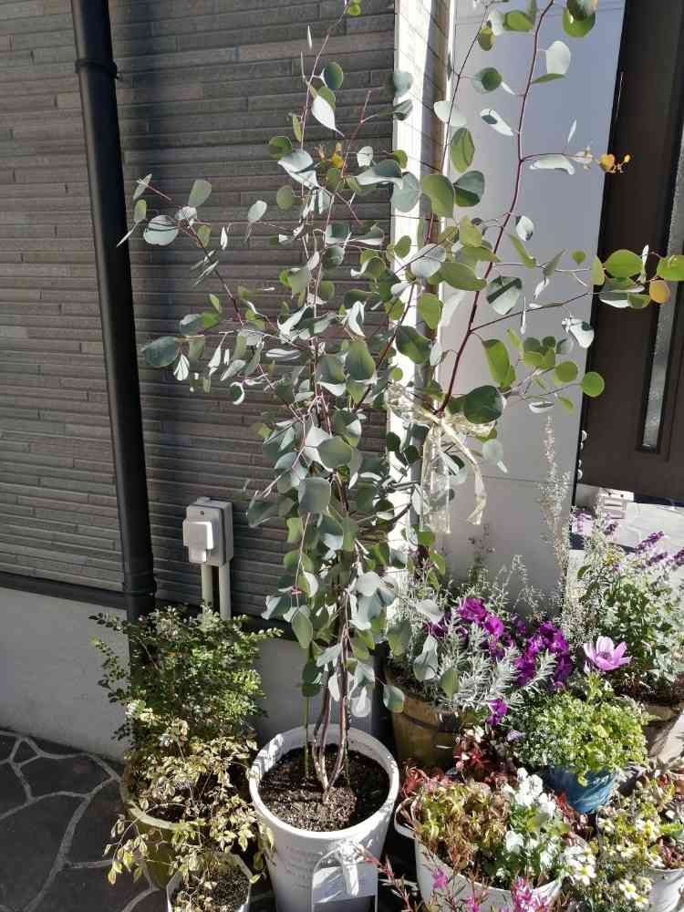 11月にうちに来たユーカリポポラスちゃん♪順調にのびてきました!リボンつけてかわいく☆