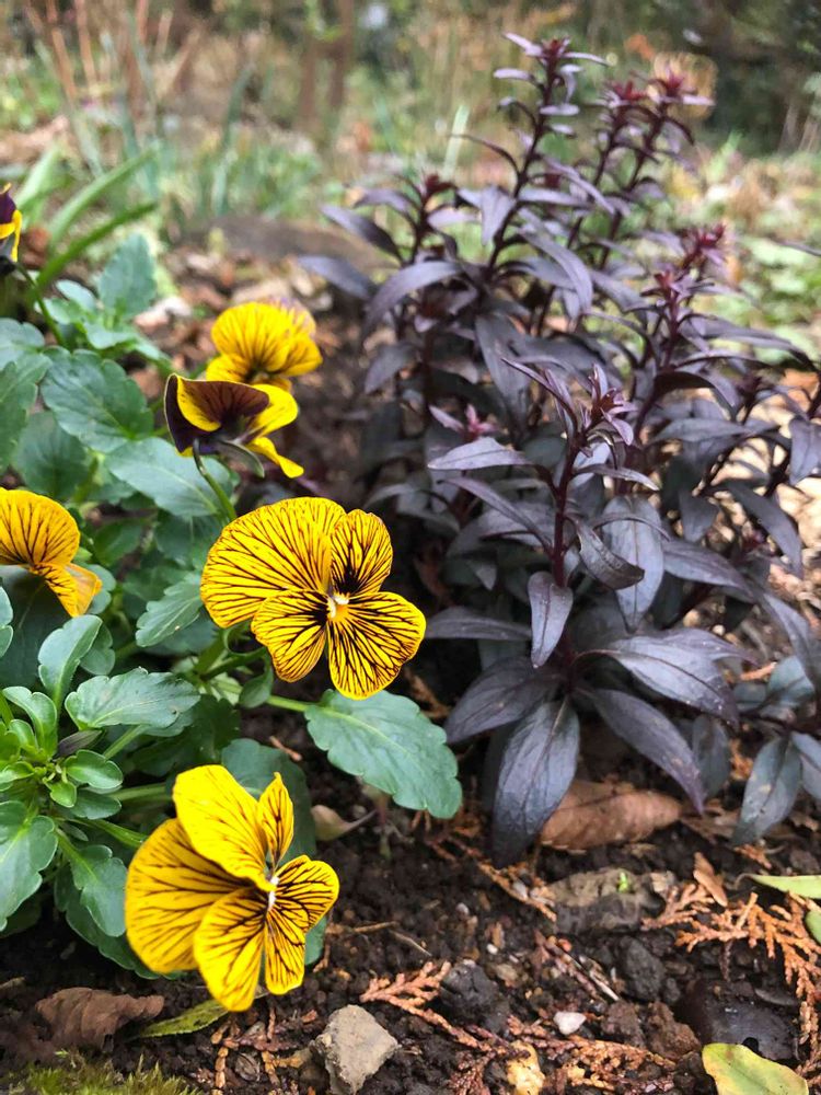 かっこよさに一目惚れのビオラを金魚草ブロンズドラゴンの横に植えました💕