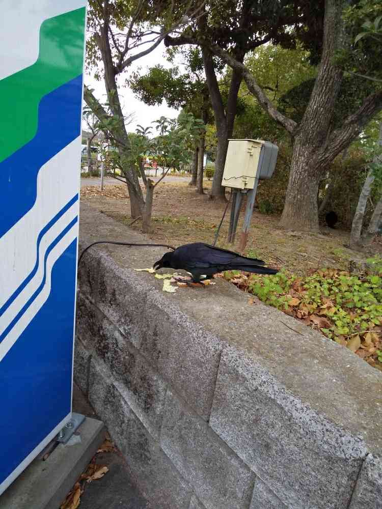 ビックリ(@_@;)でした💕💛🍀カラスと黒猫😺…黒つながりあるのかな!それとも餌繋がりかな?疑問に残ります!!(=^・・^=)💕💖✾😺★カラス★✾🍀