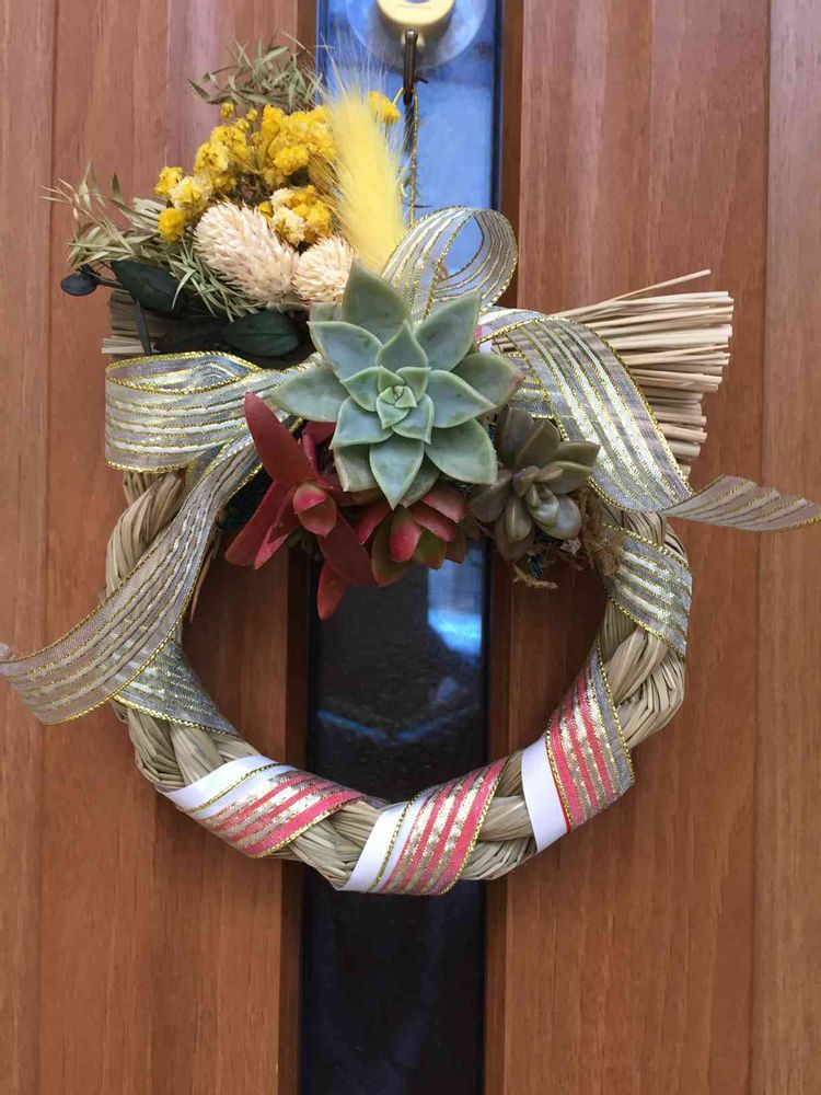 多肉を使ったしめ縄飾りをGSで載ってたのを見て参考に手作りしてみました🙋🏻
