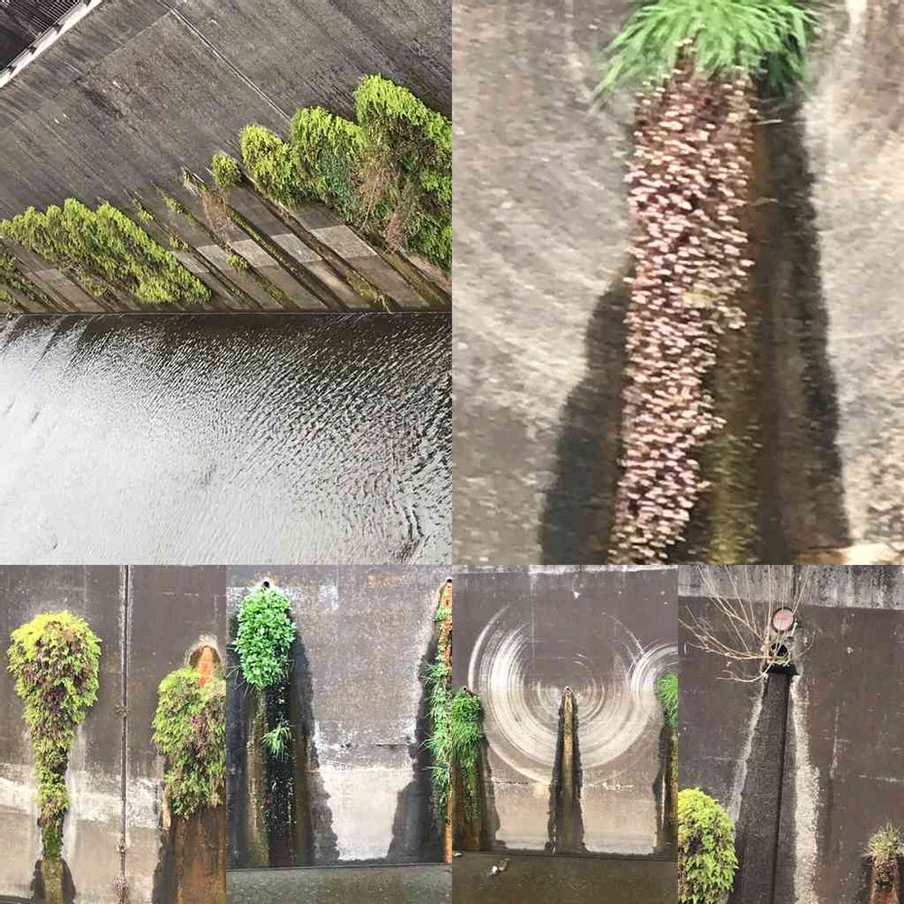 川の両サイドの壁排水穴からブーケの様に根付いている
