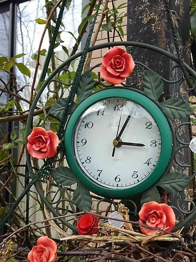 おっと‼おやつの時間だ🎵なんて、本当は壊れた時計を庭に設置してみました。ゴミは極力減らす主義です😄