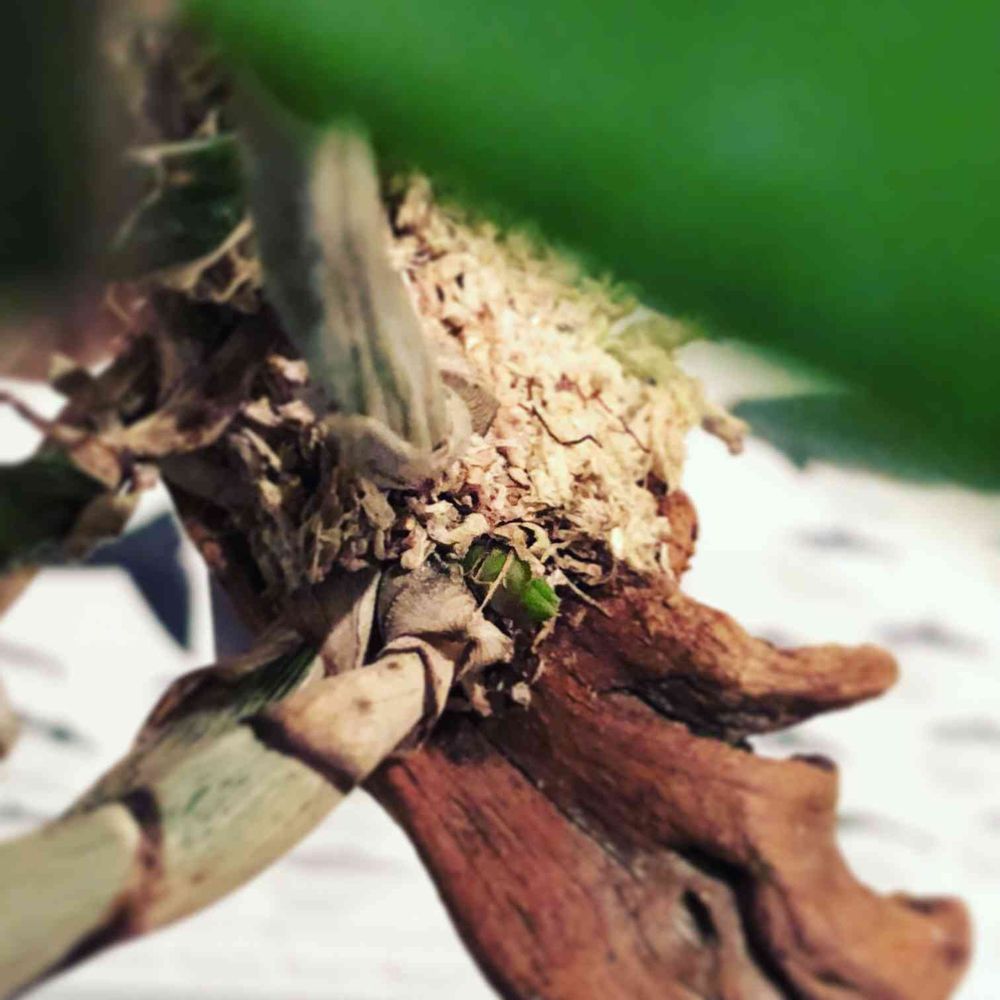 弱りまくった身体でウチに来て、1ヶ月ぐらい。ビニール袋ICUに入ったり、頑張った。芽が出てきたよ。秋に花が咲くといいなぁ。