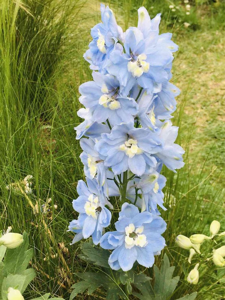 空色デルフィ開いた瞬間圧倒されるくらい花穂が一つ一つ大きく普通は薄いのに肉厚にも観えますね💙 花形のスカイツリーのようです⁎ˇ◡︎ˇ⁎