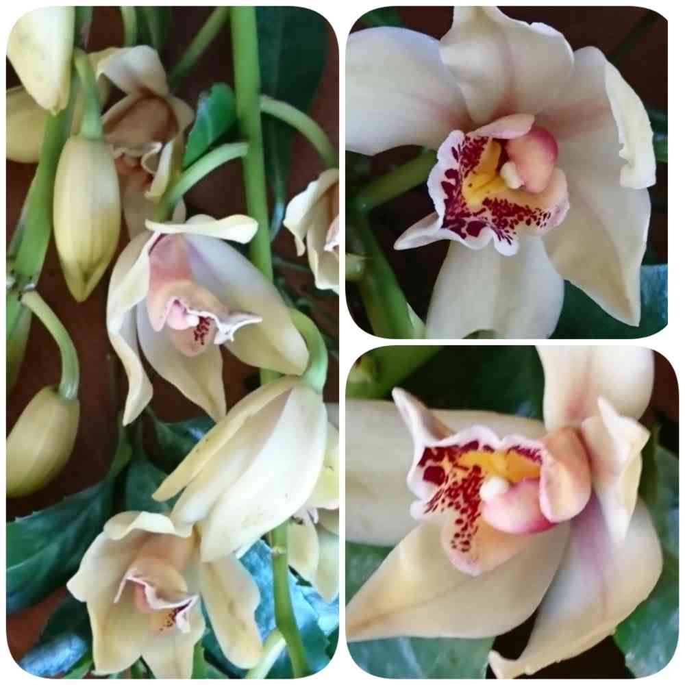 28日に 固い蕾だけどとご近所様から頂戴した,じか植えシンビジューム🥀咲き始めました。頂き物は嬉しい🙆