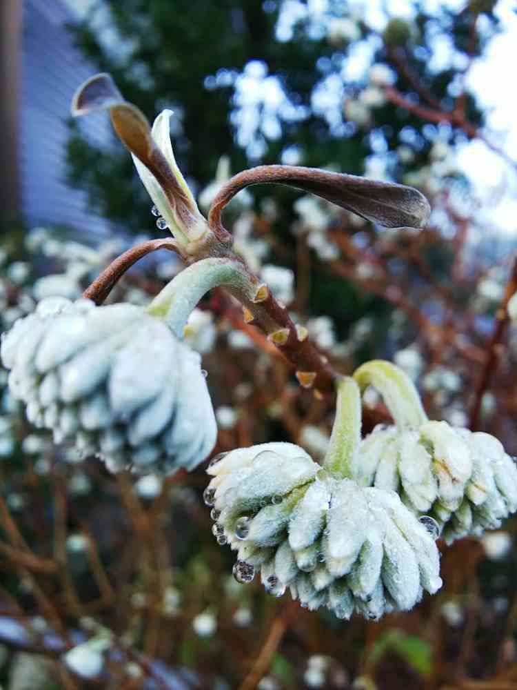 picは朝露に濡れた、今朝の我が家のミツマタです💛