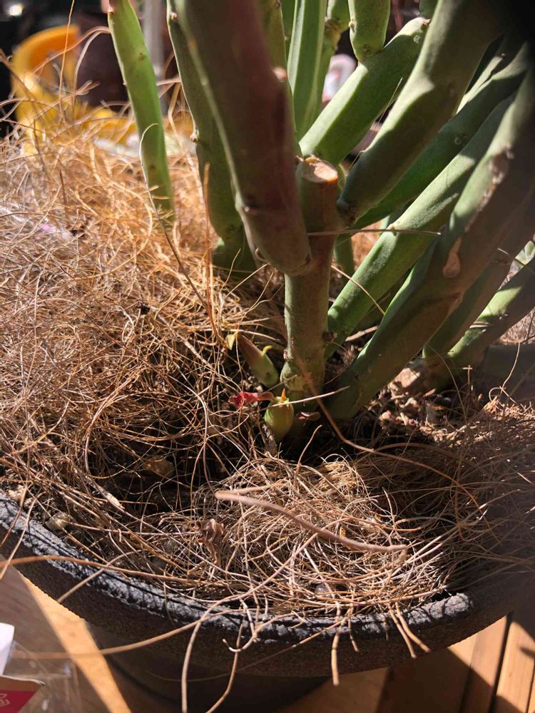 お外にいるフォスフォレアさんは寒さにも負けず新芽を出しています(b*´3`*d)