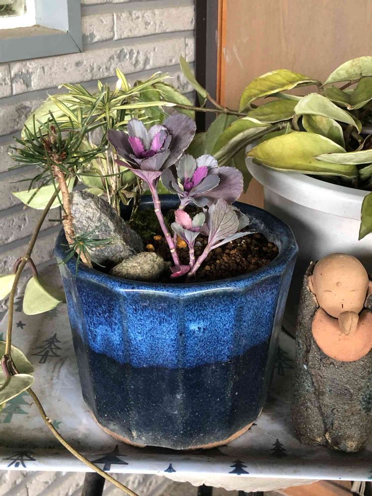 横にあるのは咲かないホヤですが、何年経っても咲かない子です(笑)青色の鉢は亡き祖母のもの、焼き物の人形はお隣りの奥さんの作品のお地蔵さん?でいいのかなぁ〜今度訊いておきます😊