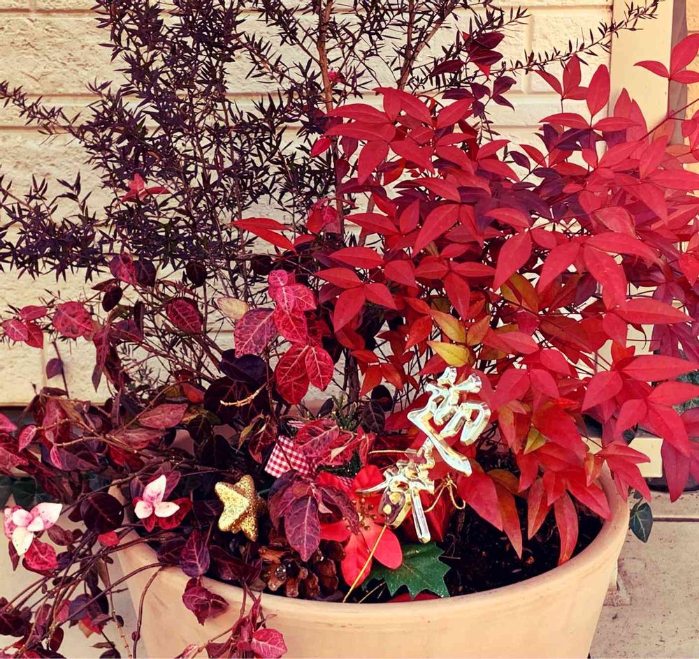 真っ赤な南天と赤く色づいた初雪カズラが華やかでキレイですね~✨🎶