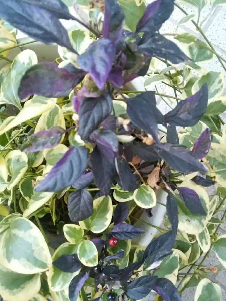 紫色葉っぱの花唐辛子、気のせいか花が付きだしてるようなやはり気のせいか、
