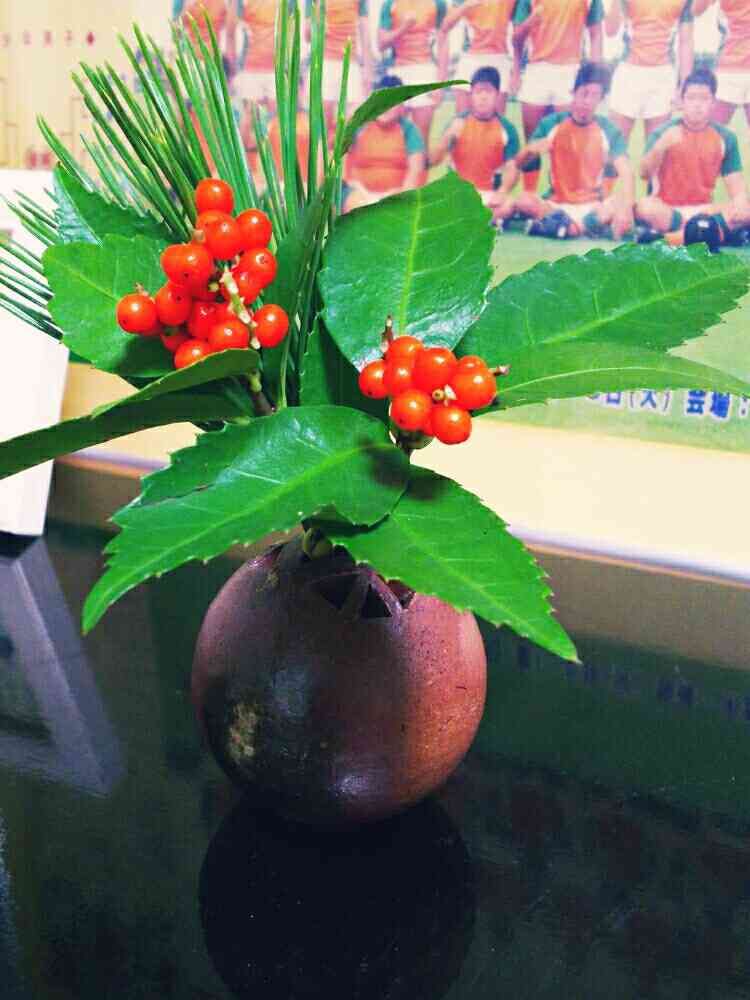 お正月飾り、センリヨウの実がツヤッツヤ 🌟