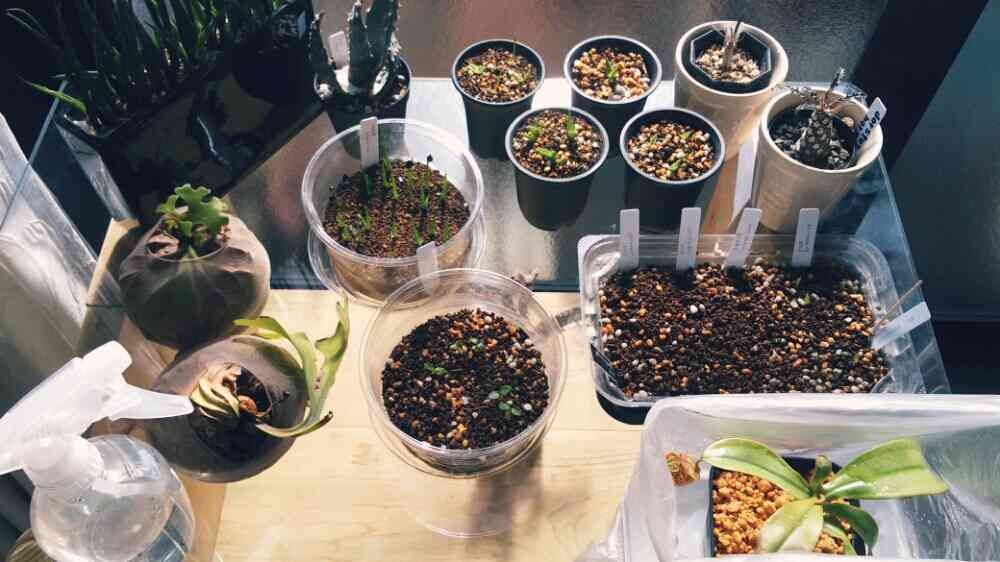 アガベ🌱サボテン🌱アロエ🌱チランジア🌱塊根🌱洋らんが特に好き♥ 種蒔き大好き✨🌱🌱🌱✨ 大きくなった姿を夢見て沢山の小さな苗たちのお世話に励んでいます! よろしくお願いします!(*^-^*)