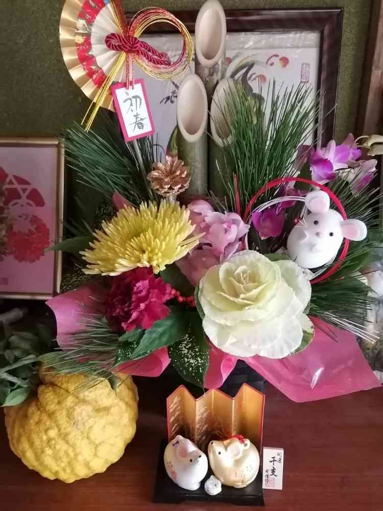 毎年長女が贈ってくれる正月のアレンジフラワー🎍🌿🌸🌼