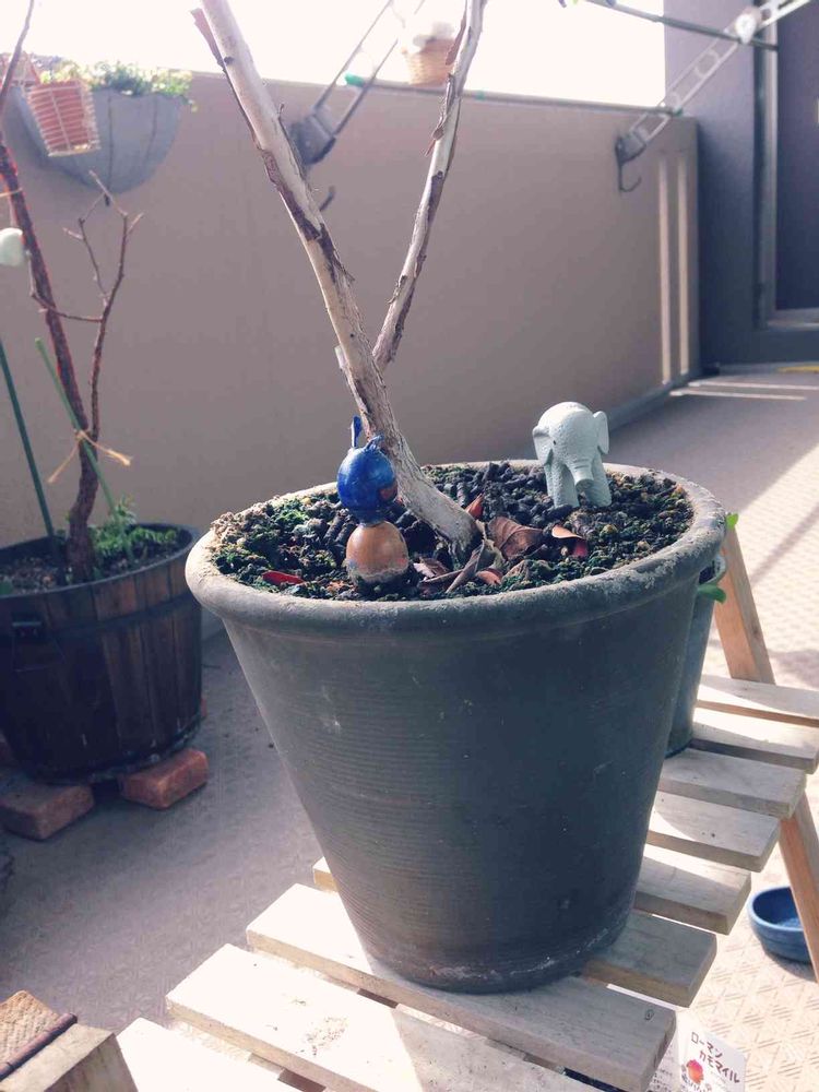 見張り番だゾウさん、今日はブルーベリーの見張り番🐘もう少しで花が咲きます🌸…て、花写ってなーい😓