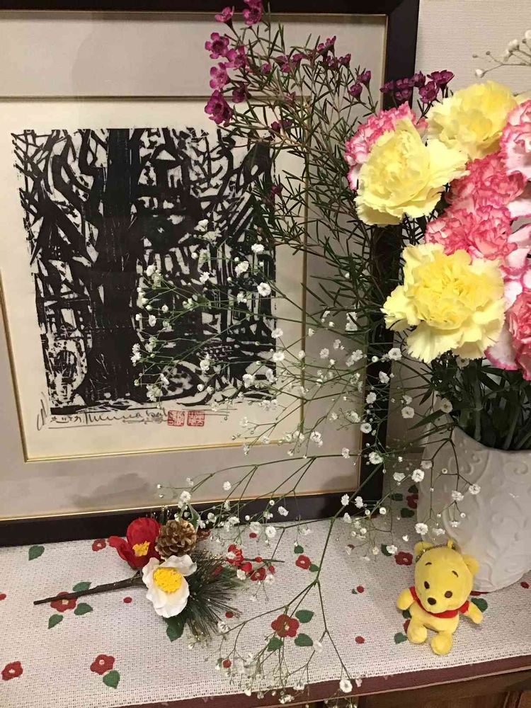 kapponさんから コメント📝を 頂いたので、kapponさんの 最近の めぼしい版画作品を 主人に 横から、画像を 見てもらい、