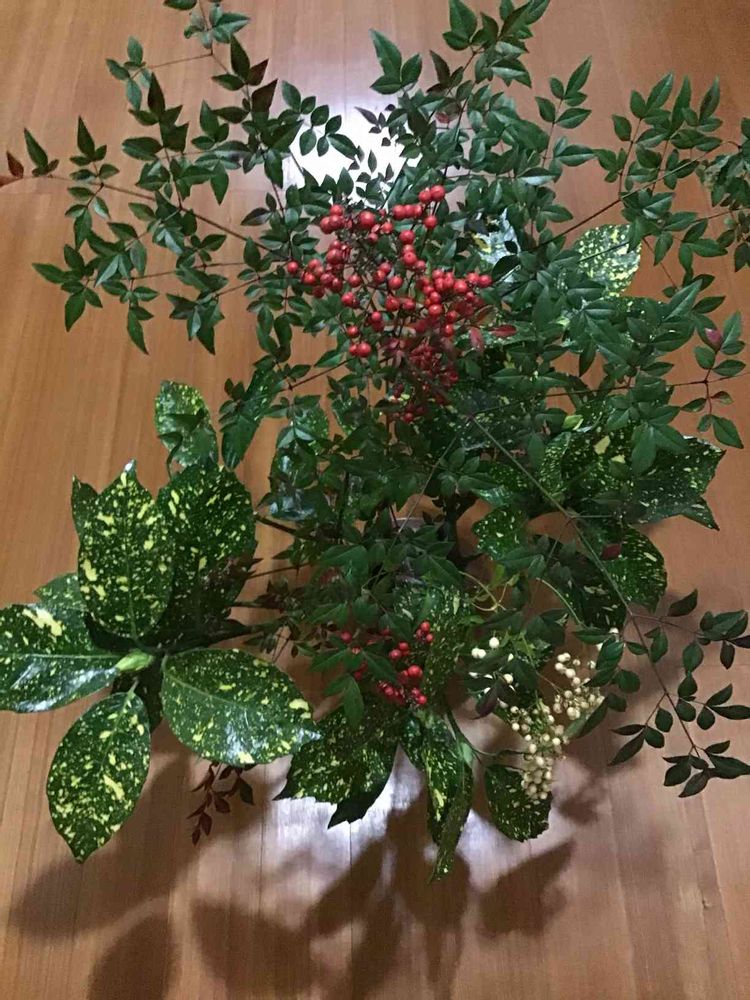 萩ちゃんさんの白南天,斑入りアオキ,小葉の赤南天の投稿画像