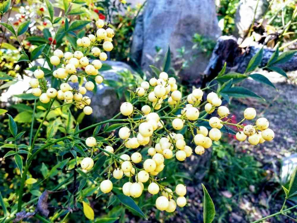 南天赤だけだと思ってました。お正月だから紅白でめでたい。