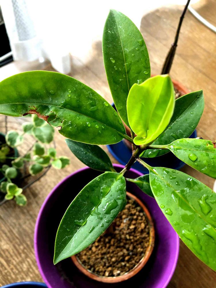 やっと新しい芽がひらきました。うちのオヒルギはピチピチに元気です。