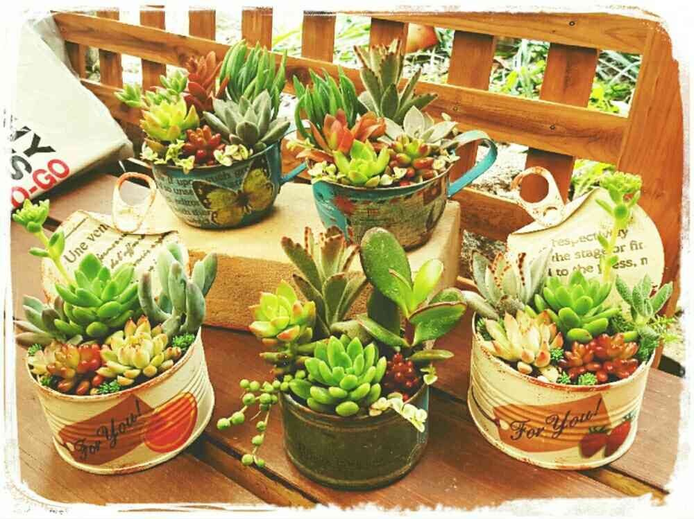 新しいリメ缶が出来たので、作業小屋で寄せ植え〜