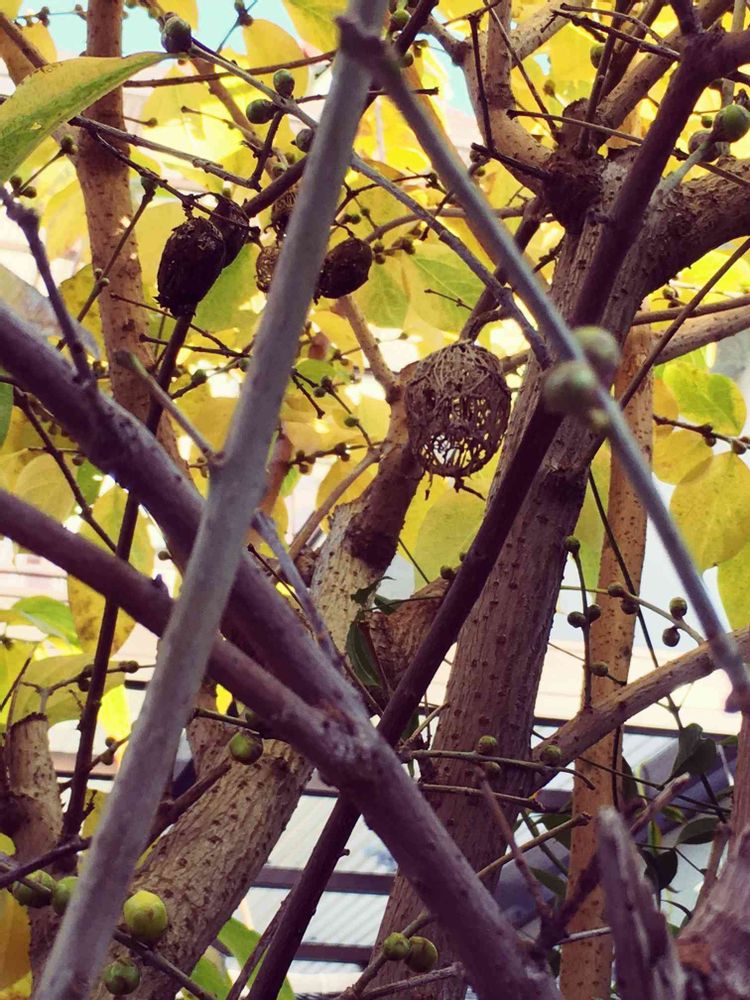 確か、ご近所のお庭にロウバイがあったはずと思い、撮影に行ったのですが、まだツボミで全く咲く気配がありません