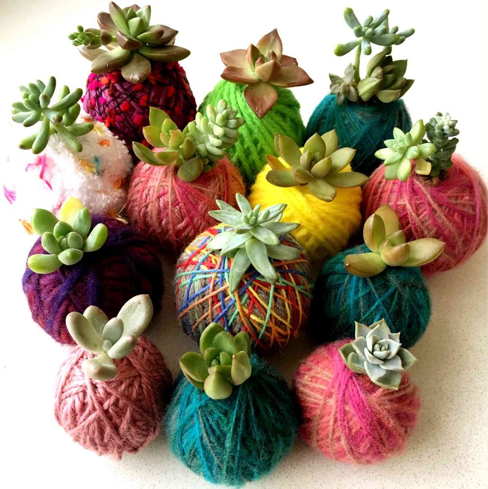 これは、多肉の根に水苔を丸く付けて、その上を毛糸でクルクル巻きました🌀🌱楽しいです🎵