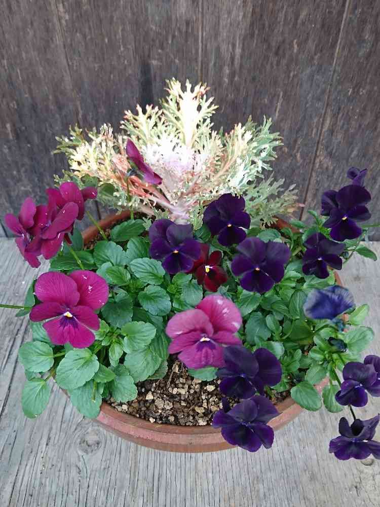 12/18に 初寄せ植えしてpicした葉牡丹 ビオラさんです😉…