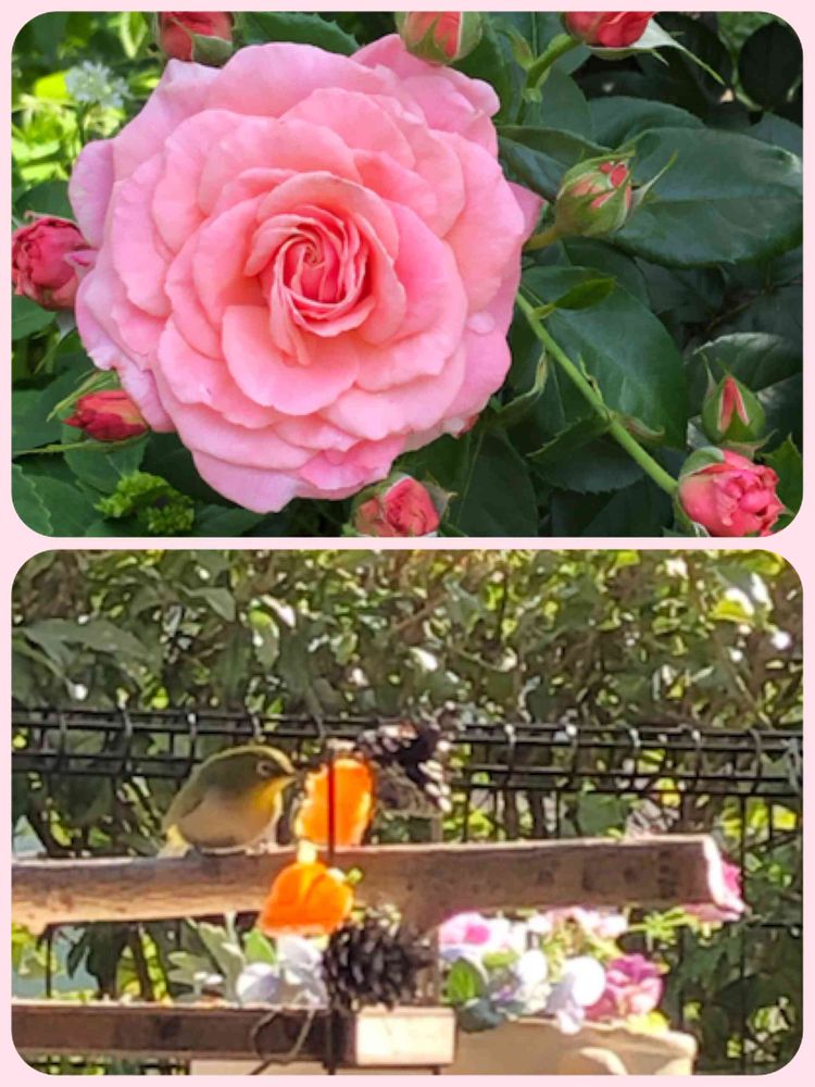 メジロさん、スズメさんと一緒に来るので安心なんでしょうか。食べるものが違うので仲良くしてました❣️