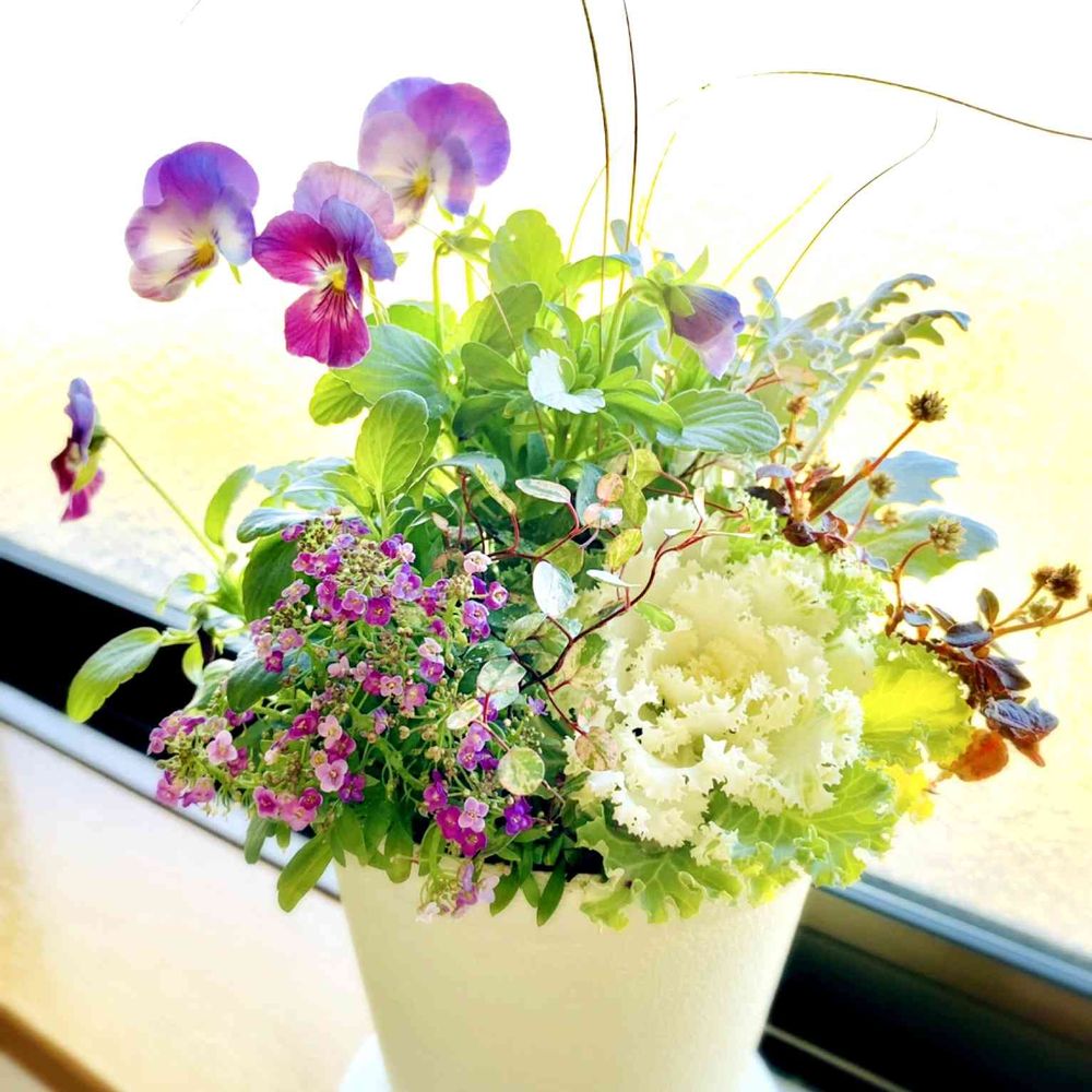 出窓に置けるミニサイズの寄せ植えです😊