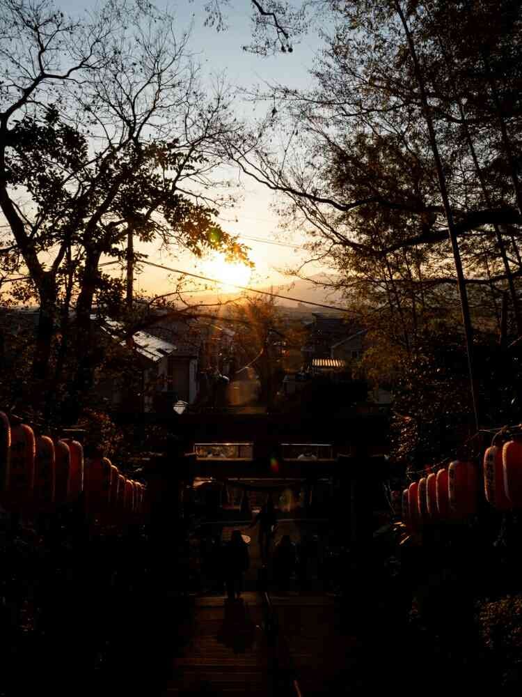 夕陽が参道に沿って沈んでいきます